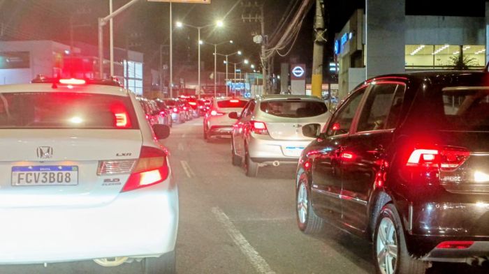 O trânsito está intenso na rodovia Osvaldo Reis, no sentido Balneário Camboriú, na noite desta sexta-feira. A fila começa em frente ao colégio Nereu Ramos, na avenida Sete de Setembro, e segue em direção a BC.