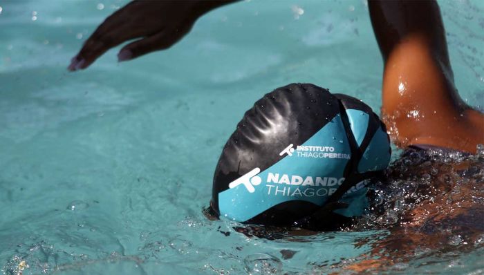 O projeto Nadando com Thiago Pereira tem transformado a vida de centenas de crianças e adolescentes de 7 a 17 anos, oferecendo aulas gratuitas de natação no Parque Aquático Municipal de Volta Redonda (RJ).