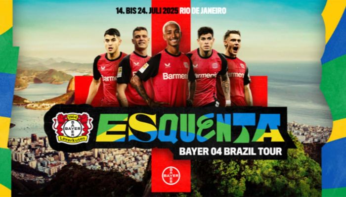 O Bayer 04 Leverkusen será o primeiro clube da Bundesliga a realizar sua pré-temporada na América do Sul. O campeão alemão e vencedor da Copa da Alemanha de 2024 viajará para o Rio de Janeiro (RJ) entre os dias 14 e 24 de julho. Sob o lema “Esquenta!”, o time treinará no centro de treinamento do Fla...