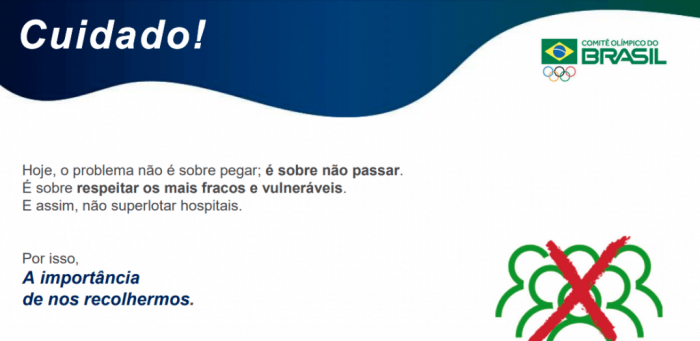 Baixe e leia o documento completo do Comitê Olímpico Brasileiro sobre as recomendações para evitar o COVID-19 RECOMENDAÇÕES AOS ATLETAS TIME BRASIL_FINAL (1)