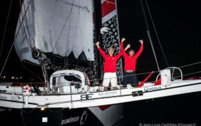 A dupla francesa, formada pelos jovens Pierrick Letouzé e Simon Kervarrec fez o percurso de 4.789,55 milhas náuticas depois de 21 dias, 23 horas, 22 minutos e 55 segundos. A velocidade média do bar...
