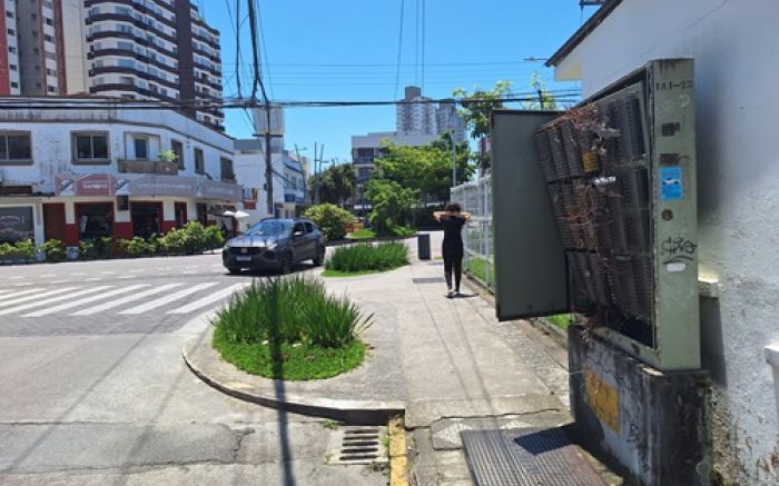 Todo mundo vive reclamando do cipoal de fios de telefonia abandonados pela cidade. Mas, o relaxamento das operadoras de telefonia chegou a um ponto tal que até as caixas postas nos passeios estão ameaçando cair na cabeça dos transeuntes. Parece ironia, mas tinha uma dessas defronte à Tele...
