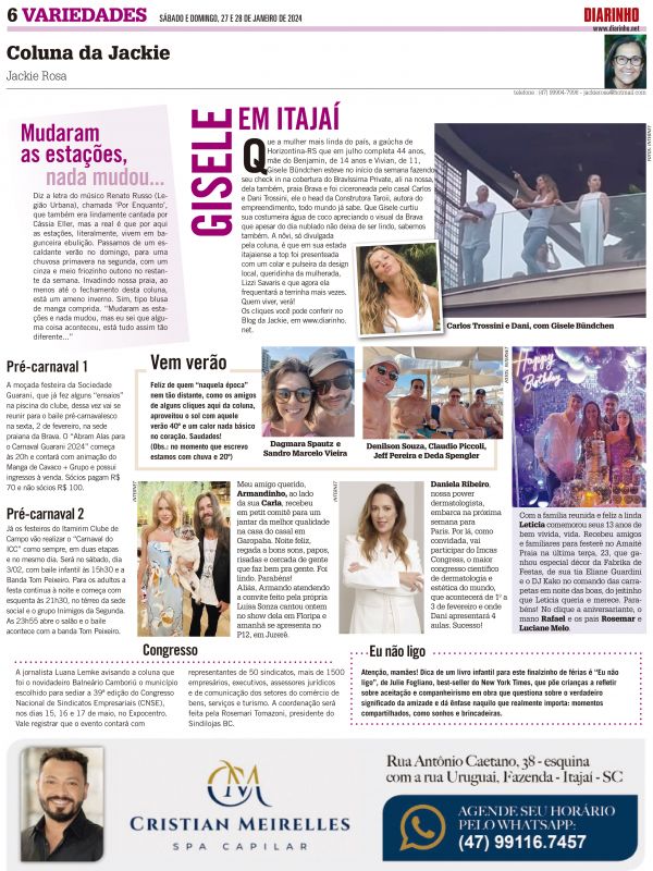 Uma grande festa marcará o lançamento de uma nova marca do grupo AMC Têxtil que tem sua sede aqui na terrinha. Trata-se do “CJ” Colcci Jeans que tem como embaixadora, nada mais, nada menos do que, Gisele Bündchen.