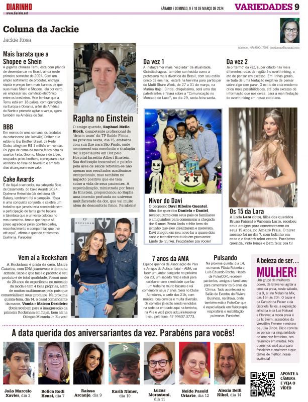 Meu irrequieto amigo Michael Domingues, o Superintendente competente do “nosso” Itajaí Shopping, assumiu mais uma, ele não para. Agora soma as suas funções a vice-presidência para Assuntos do Comércio Varejista da Associação Empresarial de Itajaí (ACII) que tem em sua presidente a Gabi Kelm, que foi...