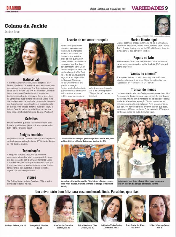 Contagem regressiva para o lançamento da coleção primavera 2024 – Florestar - da marca catarinense Lez a Lez. Tudo acontecerá na próxima quarta-feira, dia 26, com desfile a partir das 19h30 simultaneamente em duas capitais brasileiras: em São Paulo, na rua Oscar Freire, e no Jurerê Open, em Floripa...