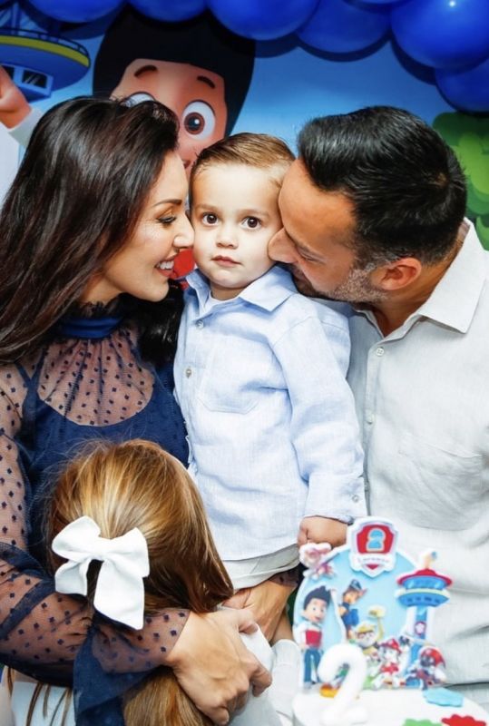 Carol Graciola e os filhos Marthina e Lorenzo comemorando o niver do papai Neto Bellini.