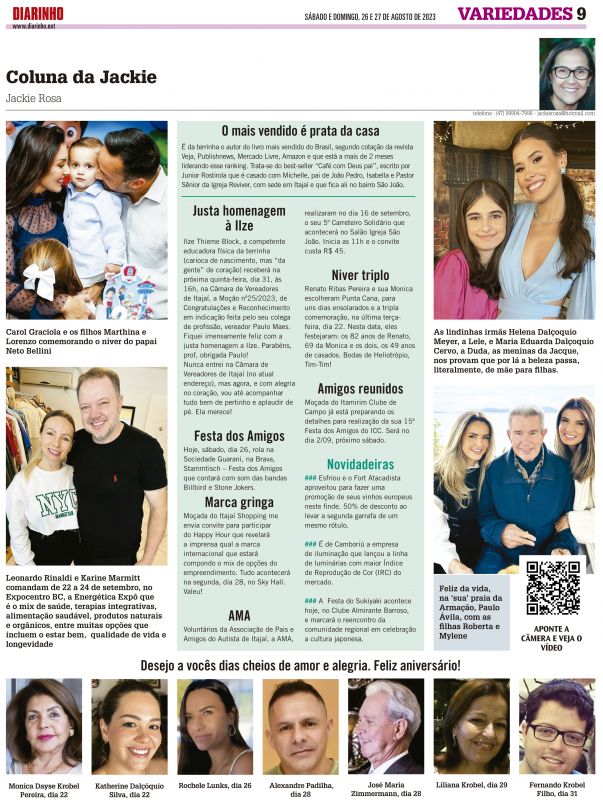 Ilze Thieme Block, a competente educadora física da terrinha (carioca de nascimento, mas “da gente” de coração) recebeu hoje, no final da tarde, na Câmara de Vereadores de Itajaí, a Moção nº25/2023 (aprovada por unanimidade), de Congratulações e Reconhecimento em indicação feita pelo seu colega de p...