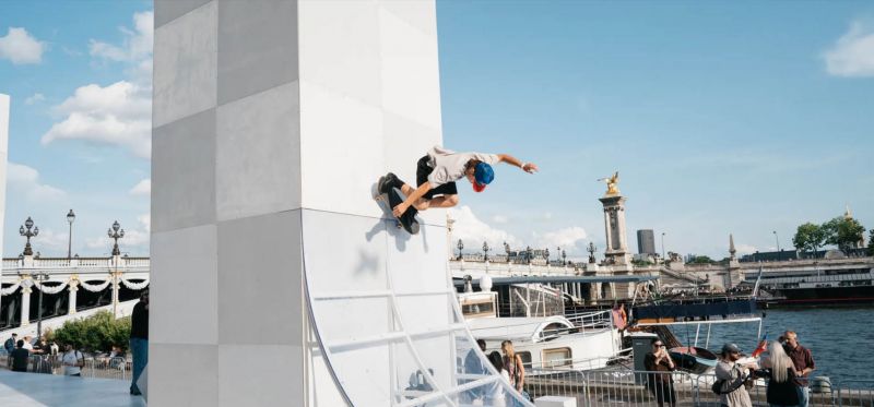 Um enorme parque de skate tomou conta das margens do Sena, aos pés da ponte Alexandre III, em Paris.