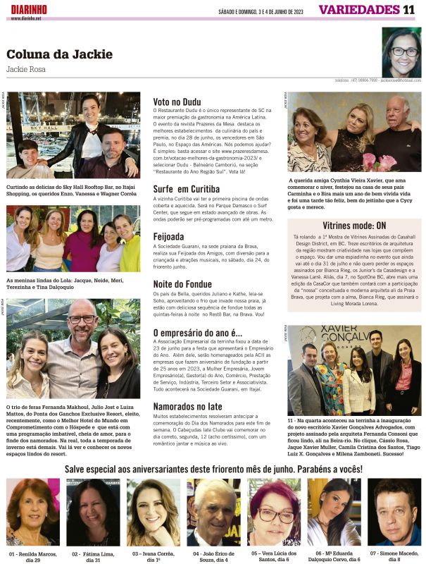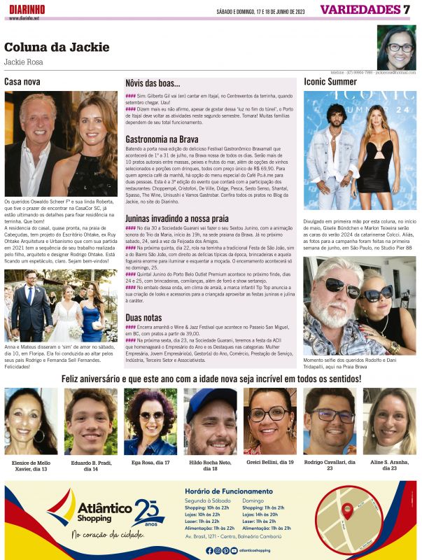 #### No dia 30 a Sociedade Guarani vai fazer o seu Sextou Junino, com a animação sonora do Trio da Maria, inicio às 19h, na sede praiana da Brava. Já no proximo sabado, 24, será a vez da Feijoada dos Amigos.