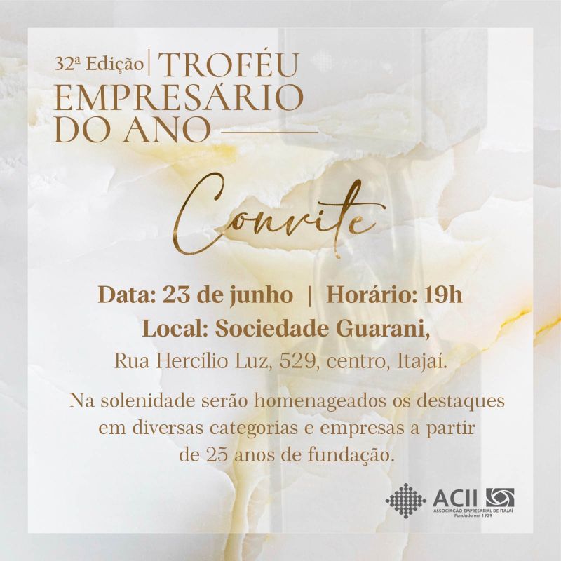 A Associação empresarial da terrinha bateu o martelo e decidiu que será no dia 23 de junho a festa que apresentará o Empresário do Ano. Aliás, seu nome já é conhecido bem antes do evento, logo após uma votação feita na sede da ACII. Além dele, serão homenageadas as empresas que fazem aniversário de...