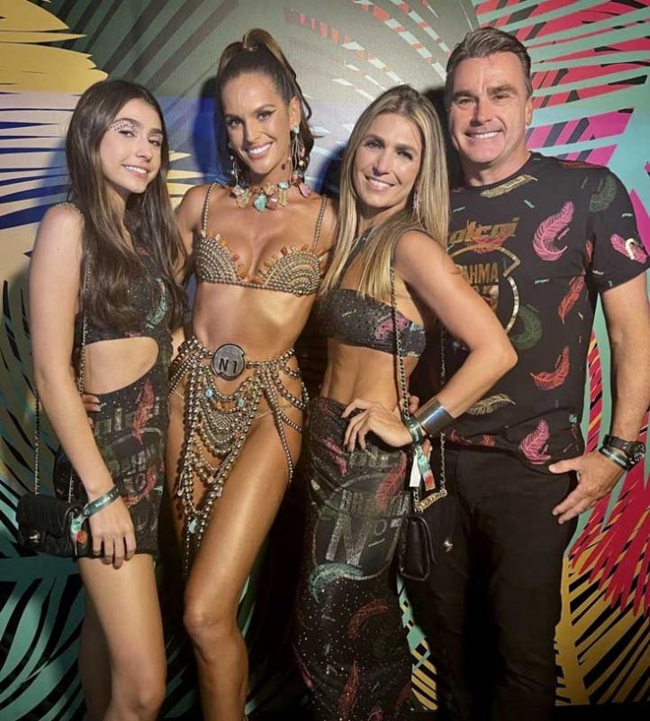 Direto do Camarote Nº 1, no Sambrodomo Rio de Janeiro, a família AMC Textil, Luísa, Sandra e Alexandre Menegotti, com a top Izabel Goulart que veste Colcci.