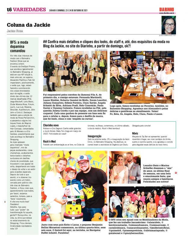 Já sabem meus antenados leitores que nos dias 20, 21 e 22 teremos moda de qualidade na terrinha com a realização da 40ª edição do Balneário Fashion, nossa Semana de Moda que eu não perco e recomendo.