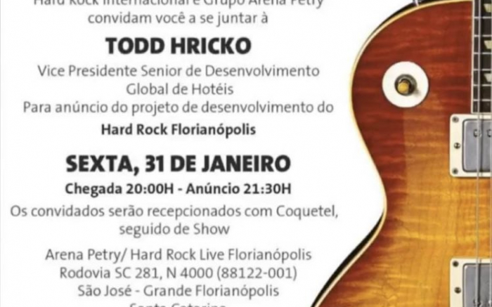 A moçada da Arena Petry, que fica em São José, na grande Floripa, divulgou em janeiro e no último dia do mês, 31, recebeu alguns convidados e oficializou sua parceria com o Hard Rock Live. A reformulação/padronização à marca acontecem ainda este ano e terá no Hard Rock Florianópolis a maior espaço p...