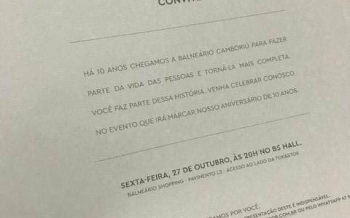 A noite vai ser boa e a comemoração dos 10 anos do Balneário Shopping, de qualidade. O festerê, que terá como convidados as pessoas que fizeram parte dessa história, rolará  na sexta-feira, 27, no próprio empreendimento que ganhará ambientação especial. Já posso adiantar aos leitores que a Solution...