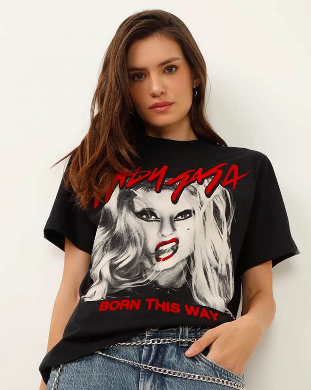 #### A C&A lançará uma coleção especial para celebrar a chegada da cantora Lady Gaga ao Brasil. Por enquanto, apenas uma camiseta está disponível, mas, logo novos modelos serão revelados.