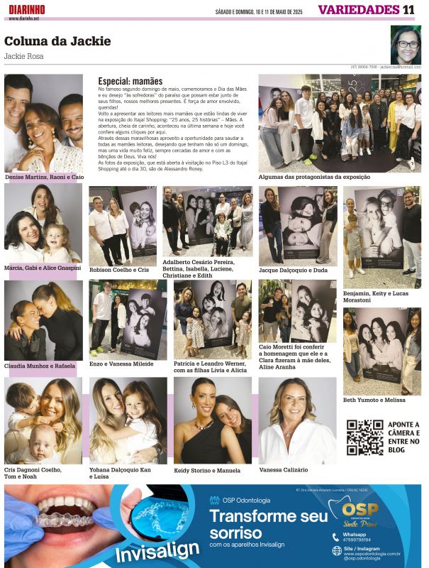 Esta semana, na quarta-feira, dia 30, as 19h, acontecerá a abertura da exposição “25 anos, 25 histórias”, comemorativa aos 25 anos do Itajaí Shopping e ao dia das mães que se aproxima. Hoje vou mostrar aos leitores do blog, as mamães protagonistas dessa homenagem. Em minha coluna do jornal impresso ...