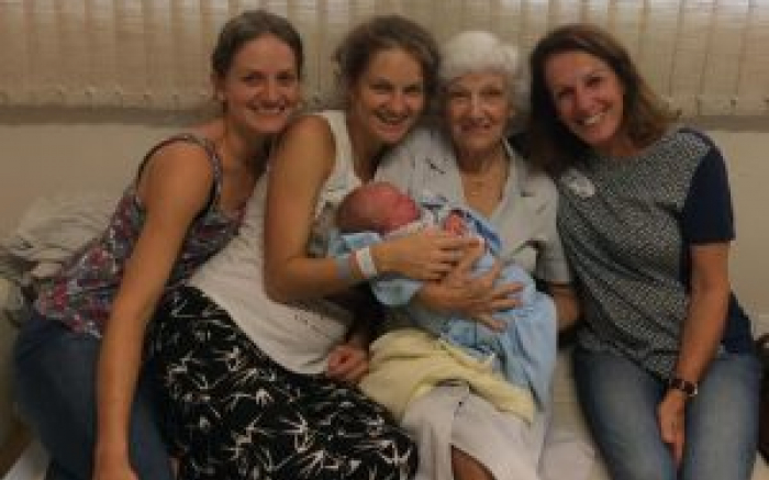 As quatro gerações felizes com a chegada ontem do baby Ian: tia Kike, mamãe Lorena Kreuger, bisavó Dilma Orofino e vovó Regina Orofino Kreuger. Felicidades família e muita saúde ao pequeno Ian!