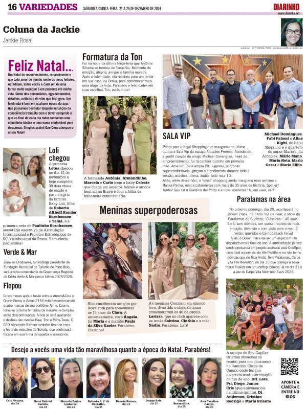 Mais uma coluna e essa chega desejando aos leitores um feliz Natal!