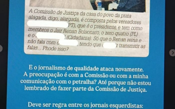 O vereador da Dubai City, Jair Renando, ops, Renan Bolsonaro (PL), publicou nos seus stories do Instagram que a informação deste socadinho escriba, divulgada na coluna JotaCê do jornal que todo mundo lê (até o Renan!), sobre o fato de ele não conversar com o presidente da Comissão de Justiça, estava...