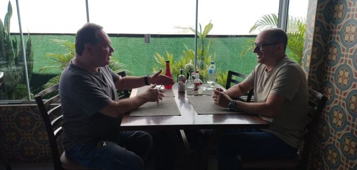 Entre uma garfada e outra, Fabinho não esconde o entusiasmo e confiança que tem no sucesso da eleição de Osmar Teixeira para deputado est...