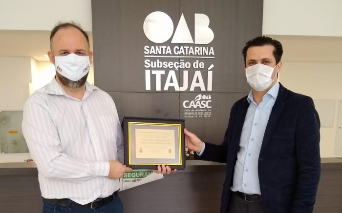 O entisicado presidente do PSL de Itajaí Fernando Pegorini, que é advogado e vereador, hoje pela manhã entregou Moção de Congratulações e Reconhecimento à OAB Itajaí pelos seus 49 anos de relevantes serviços prestados à comunidade. Advogado A moção foi aprovada pelo plenário da piramidal casa do...