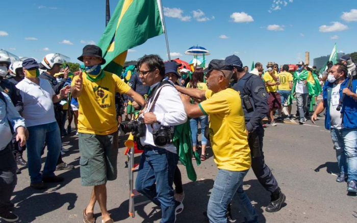 A meia dúzia de manifestantes aloprados que estiveram na carreata em frente ao Palácio do Planalto na capital federal, em Brasólia, ontem, agrediu com socos, murros e pontapés jornalistas do jornal Estadão. E, bem no Dia Mundial da Liberdade de Imprensa. Algo que tem que ser repudiado com veemência ...