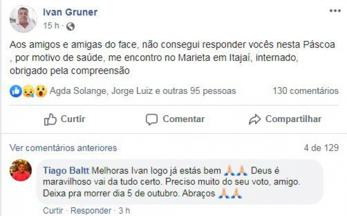 A eleição tá longe, mas a baixaria já começou. Um comentário do pré-candidato a prefeito de Piçarras, Tiago Baltt (MDB) em uma página de feicebuque foi editado, feito uma montagem e disseminado nos zapzap da ex-capital do Jet Sky. Jogo sujo Infelizmente é o jogo sujo que é usado por alguns, na ...