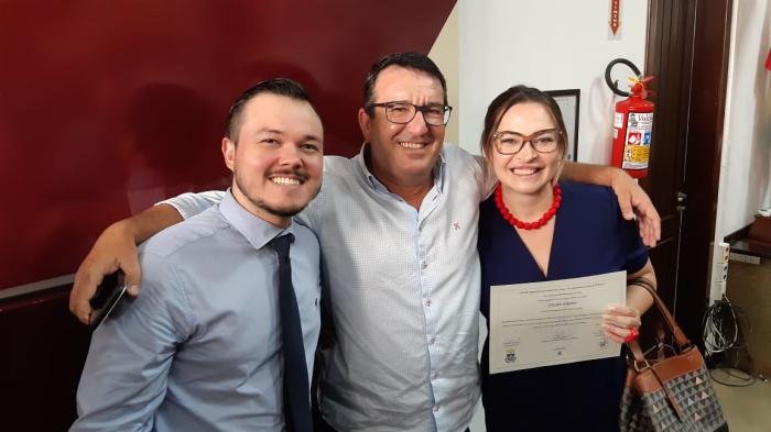 A advogada Graziela Eskelsen tomou posse no dia de hoje como conselheira tutelar da city peixeira. E, promete trabalhar com afinco em prol de nossas crianças e adolescentes. Foto (Divulgação)Na imagem os advogados Júlio França, Artur de Jesus e Graziela.
