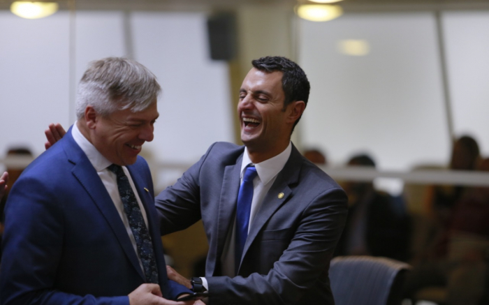 Fabiano da Luz (PT) entrevistou o pai de João Amin (na época governador do Estado), o atual governador e hoje senador, o turco careca, Espiridião Amin (PP), na época em que era apresentador de rádio. Hoje, João e Fabiano são colegas de Bancada. Fabiano, líder do PT na leleia, e João, representando o...