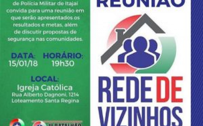 Hoje tem reunião do Conseg - Conselho Comunitário de Segurança - lado Oeste de Itajaí, com o povo de Espinheiros e Loteamento Santa Regina. Faz um ano que foi implantado no zapzap o "Rede de Vizinhos" que é monitorado pela Polícia Militar e, colabora com a comunidade na eterna luta pela segurança. O...