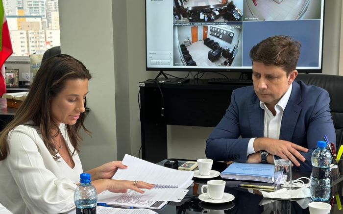 Os prefeitos eleitos de Balneário Camboriú (Juliana Pavan/PSD), Camboriú (Leonel Pavan/PSD) e Itajaí (Robison Coelho/PL), em conjunto com o secretário estadual de Articulação Internacional, Paulinho Bornhausen, discutiram na tarde desta quinta-feira o Promobis — que inclui o túnel Itajaí/Navega.