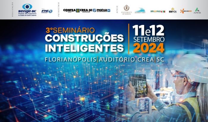 O CREA-SC sediará a terceira edição do Seminário Construções Inteligentes, que ocorrerá nos dias 11 e 12 de setembro. O evento, promovido pelo Sindicato dos Engenheiros de Santa Catarina (Senge-SC) e apoiado pelo Conselho, integra a Política de Patrocínio do CREA-SC.