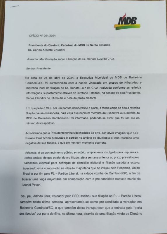 O intrépido Pai Atanásio que leu uma reportagem da revista Veja, bem no dia do trabalho, dando conta do racha no partido em Balneário Camboriú, que tem o filho do ex presidente Bolsonaro, Jair Renan, como candidato a vereador.