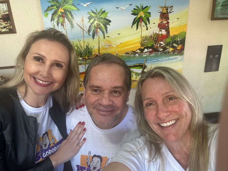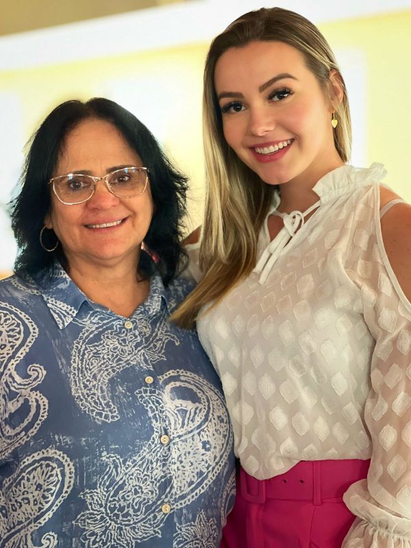 A bonitona Vivian Schaefer (ex-miss Itajaí), suplente de vereadora e coordenadora do Republicanos Mulher, agarradinha com a Damares