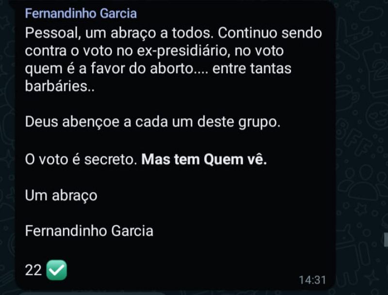 O secretário da Fazenda da capital da pedrada e ex-do tiro ao vereador, Fernando Garcia estaria ameaçando os servidores para votar no candidato à reeleição à presidência Jair Bolsonaro (PL).