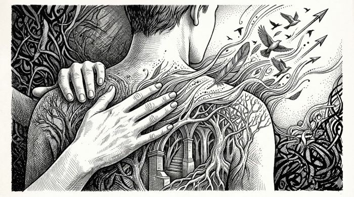 Este poema surgiu justamente dessa sensação: encostar as mãos nas costas de alguém e perceber, naquele contato silencioso, o quanto já atravessamos para chegar até ...