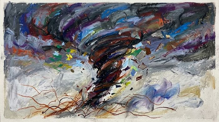 Esse nasceu desse instante simples: a caneta falha, o azul não vem, e o pensamento fica suspenso. É um pequeno desvio — mas suficiente para interromper tudo.