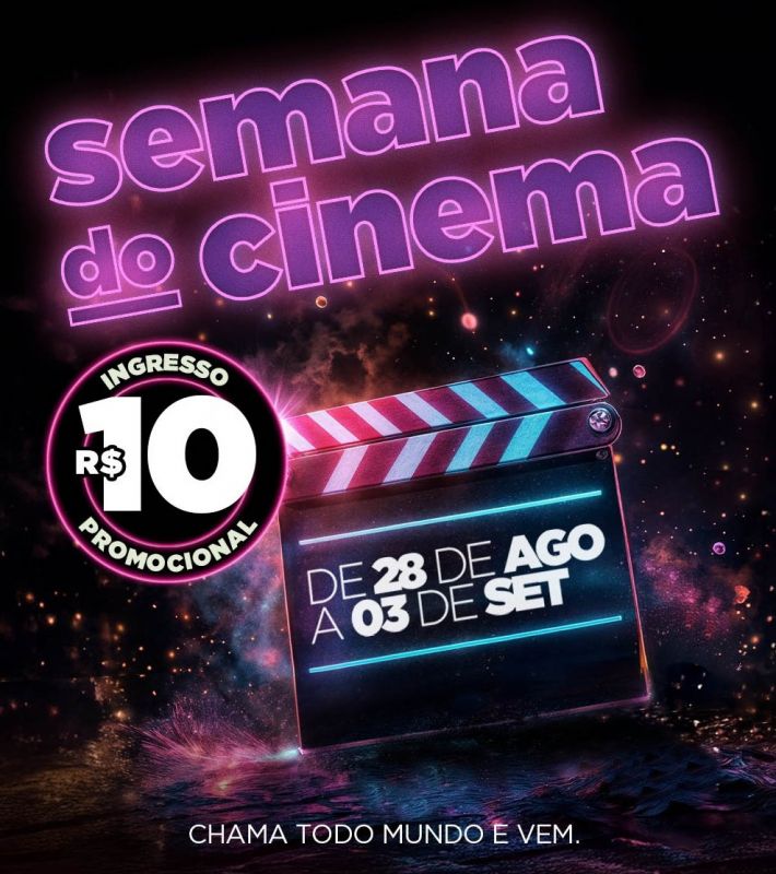 Vamos ao cinema? Começa hoje e vai até o dia 3 de setembro a 7ª edição da Semana do Cinema quando todos os ingressos para filmes custam 10 reais. Vale lembrar que a promoção também se estende aos combos de pipoca e refrigerante com valores mais baixos, para que possamos ter uma experiência completa.