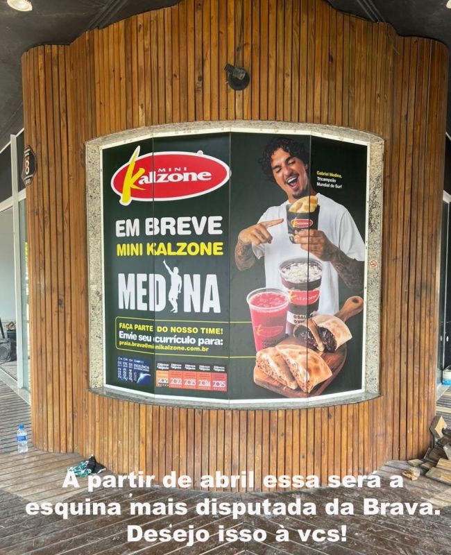 Os dois feras do surf, o “nosso” Matheus Navarro e o do tri-campeão mundial, Gabriel Medina (foto acima), abrem as portas na primeira semana de abril, na Brava, claro, bem naquela esquina na frente da rótula da Avenida Carlos Drummond de Andrade, da franquia “Mini Kalzone”. A obra está adiantada e com certeza o espaço será o novo hype da praia.