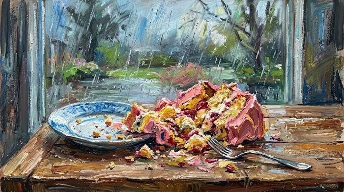 Esse nasceu de uma cena simples: tarde molhada, clima frio, tentativa de aconchego… e o bolo cai. O que seria rotina vira surpresa.