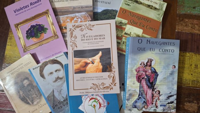 Recebi das mãos do Rogério Lázzaris o último livro da escritora Didymea Lazzaris de Oliveira intitulado ‘Navegadores do rio e do mar – um retrospecto ao passado de Navegantes’, publicado em 2024. O livro, além de ser uma excelente contribuição à historiografia regional, notadamente para o Município de Navegantes, tem como detalhe fundamental o fato de ter sido redigido com a autora completando seus 93 anos de idade.