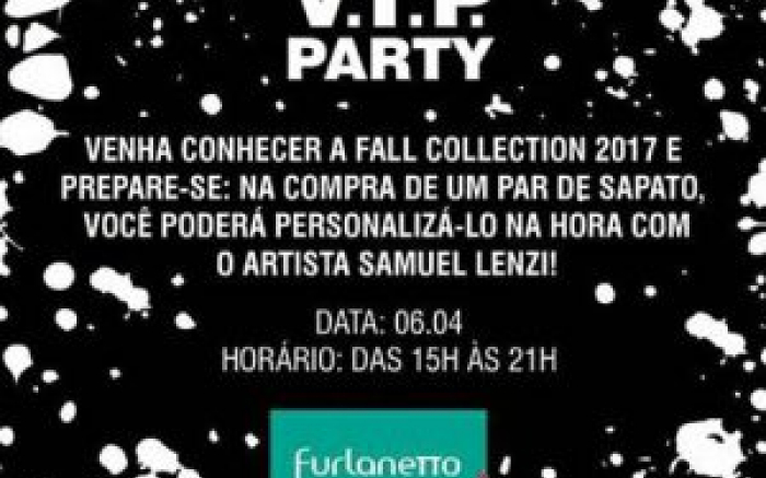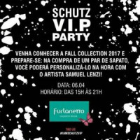 Schutz VIP Party Cristina Andrade recebe antenadas hoje, das 15 às 21h, para o lançamento de inverno do mix de multimarcas Furlanetto, case de sucesso total e sempre. Desta vez teremos uma VIP Party com direito a DJ Léo Nunes, Samuel Lenzi Custom Arts, sorteio de scarpins para você escolher cada detalhe em sua customização que pode (e deve) ser feita na hora por Samuel, além de delicinhas, muitos drink’s e a mulherada linda da terrinha reunida. Eu vou, lógico!