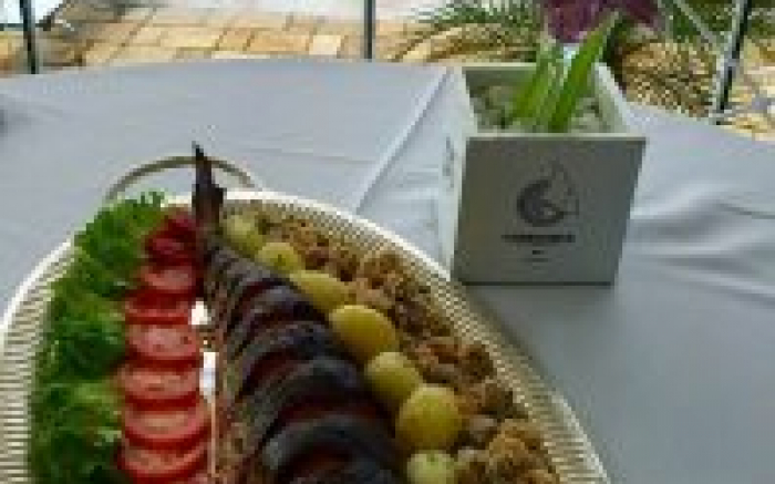 Os ecônomos do Cabeçudas Iate Clube, Aírton e Amadeu, preparando para o sábado, 24, um almoço no capricho, com mix comestível de sucesso e vista para o mar.