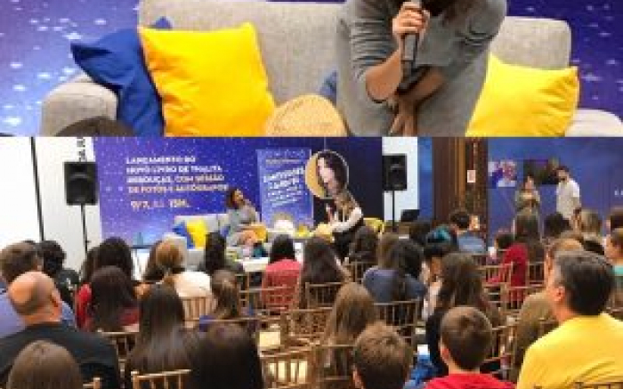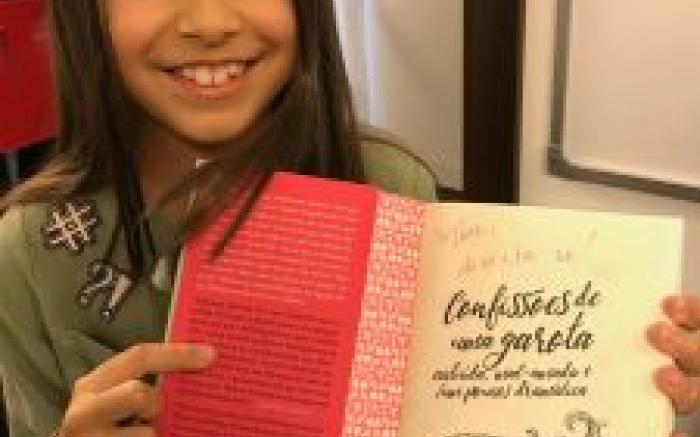 Fizemos um domingo “mulherzinha total”, quinteto reunido, diversão garantida! No melhor estilo mãe e filhas (eu com a minha Marina e a Nana com a Ton e Marcela) seguimos para o almoço no Outback. Fila não programada, almocinho rápido, mas uma delícia e seguimos para administração do Balneário Shopping, pois lá estava o camarim destinado a escritora Thalita Rebouças, hit absoluto da garotada, e que veio a Cambú Beach, trazida pelas Livrarias Catarinense. Entrevista pré-agendada, as pequenas Marcela e, principalmente, Antônia (leitora assídua de Thalita) estavam ansiosas. Thalita Rebouças para quem não sabe, eu não sabia muito, mas a Ton me contou tudinho. Coisa linda de ver! É sucesso nacional e internacional e escritora que já superou a venda de mais de 2 milhões de exemplares. Ela veio para lançar, autografar e conversar sobre seu 22º título, o “Confissões de um garoto tímido, nerd e (ligeiramente) apaixonado”. Antônia começou com suas perguntas e foi bacana a entrevista sob a ótica de uma leitora de 10 anos que compõe seu público alvo. “Não me inspiro em ninguém especificamente para escrever meus livros, na série ‘Fala Sério’, por exemplo a relação mães e filhos é a inspiração. Já no livro ‘Fala sério, professor’ tem muito dos meus professores e ai sim de pessoas específicas. Alguns acontecimentos desta série são fatos reais, mas o que mais tem a ver comigo é o ‘Fala sério, amor’”, afirma a escritora. A popularidade de Thalita é tanta que seis produtoras a procuraram para adaptar seus livros para o cinema. Um dos projetos já foi lançado em 2016 – e com sucesso – nas telonas: o filme ‘É fada’. O longa metragem foi baseado no livro ‘Uma fada veio me visitar’. Antes de encerrar nosso bate-papo, que ainda passou pelas delícias de ser repórter do The Voice Kids, ela afirmou: “Amo esse universo. Um dos motivos pelos quais escrevo para adolescentes é porque adulto fala ‘gostei muito do seu livro, obrigada’. Já adolescente fala ‘caraca, teu livro é muito irado, posso te dar um abraço?’ e me agarra. Gosto disso. Eu sou abracenta.” Qualquer pessoa que faça um adolescente ler tem o meu aplauso, respeito, admiração e o espaço também! Valeu Ton, foi inspirador! Me acompanhe nas Redes Sociais: Instagram | Facebook |