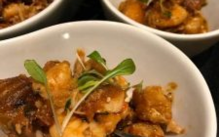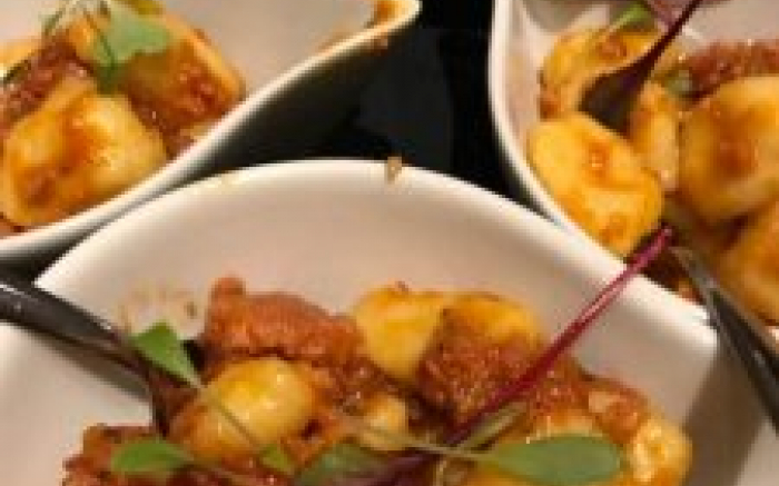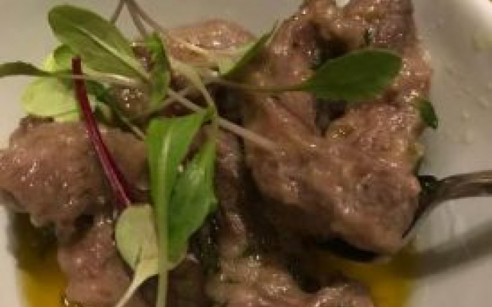 Tudo começou com esse Steak tartare que eu pulei. Na real, eu fiquei 25 anos sem comer carne, voltei faz uns 2 anos e ela crua, sorry, ainda me assusta um pouco... Depois foi a vez desse Sour Steak que eu amei. Foi meu segundo prato preferido (logo te falo o primeiro), cheguei a ir falar com o chef e ele me contou que era um petisco da casa. Essas tirinhas de carne são salteadas com limão e manteiga e ficam uma coisa de boas. Recomendo! Logo no terceiro prato já encontrei meu preferido: gnocchi da casa que é de batata, com ragu de linguiça Blumenau e alecrim. Delicioso e eu vou voltar várias vezes só pra comer esse gnocchi... Risoto de Salmão... Garoupa à Marineira que foi servido com um molho de frutos do mar... O Cordeiro da Casa foi servido com tagliatelle na manteiga... E pra finalizar a sobremesa era uma de minhas “doçurinhas” preferidas: Banoff...