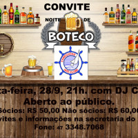 O Cabeçudas Iate Clube  reservou a última sexta-feira do mês, dia 28, para realizar um festerê aos associados e seus convidados. A partir das 21h, o Boteco Bacana vai comandar a noite que contará com DJ, finger food, no melhor estilo boteco de ser, animação com direito a dancing e boas vibrações. Como é aberto ao público basta procurar a secretaria do Iate, comprar seu convite que a diversão será em Cabeçudas. Vamos?   Me acompanhe nas Redes Sociais: Instagram | Facebook