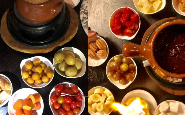 Minha semana não foi fraca no item ‘comestível’, digamos assim, mas foi, lógico, uma delícia! Na quinta, atendendo a gentil convite do jornalista Andre Huscher, o boa gente Giga, junto com um grupo de coleguinhas da imprensa, fomos degustar o fondue do restaurante Keamuka, em Itapema. Uma gostosura que fica na avenida da praia. As novidades por lá chegaram com o frio e agradaram. Eles servem dois tipos de sequência de fondue: a Tradicional e a Premium. Nas duas opções voce terá no de carne, mignon e frango, no premium o acréscimo de picanha e camarão. No de queijo, o premium soma além do tradicional, o de ervas, marguerita e gruryere. No de chocolate pode-se ter mais o ferrero rocher, nutella e branco. Nos dois casos as reposições são ilimitadas. É de “lamber os beiços” de tão bom. Eu não sou muito apaixonada por carne então, comi um camarão para provar os molhinhos que são muitos, provei outros com o pão do fondue  de queijo e eram deliciosos. O de queijo eu amo grau dez. Ainda pedi ao garçon que nos atendeu que não retirasse  o de queijo para fazermos misturinhas com o de chocolate e fui prontamente atendida. Nunca tinha comido fondue de chocolate branco, nem de ferrero rocher, mas são super gostosos. Na hora do de chocolate, um dos acompanhamentos é o marshmallow que no Keamuka vem com rechaud separado para você fazê-lo assado se quiser. Esses detalhes fazem a diferença. Gostei de tudo, recomendo e vou voltar. Obrigada Giga,pelas gostosuras e bom papo da noite! Me acompanhe nas Redes Sociais: Instagram | Facebook