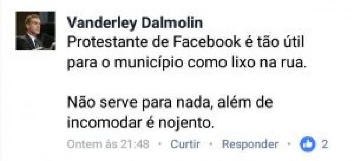 Vereador Dalmolin afirma que protestante de face é igual lixo, incomoda e é nojento