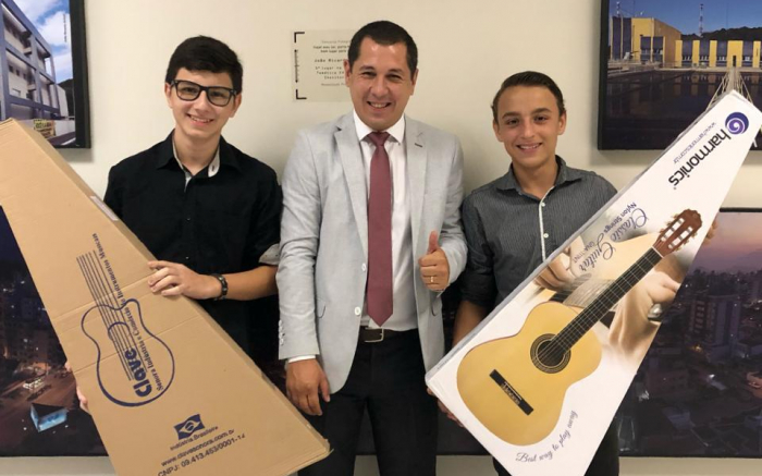A coluna do JC já havia dado em primeira mão o concurso bacana promovido pelo futebolista Níkolas Reis (PSB) que consultou a pirralhada do ensino fundamental antes de protocolar um projeto de lei que deve levar música para as escolas, como manda a legislação federal. Didático Além da questão da premiação, o concurso é pra lá de didático, porque ensina os pimpolhos a como fazer um projeto de lei e acompanhar os trâmites até à aprovação. É de mais iniciativas assim que a educação desse brazilão precisa. É isso aí O Blog do JC, aproveita para parabenizar os alunos Gabriela Bertotti Sabino, Julia Jacinto Oliveira e Willian Daniel Izauro Marin, que são da Combemi, pelo primeiro lugar, e os alunos Bruno Luiz Cordeiro e Darlan Rogério Foss Theiss, que são do Melvin Jones, pela segunda colocação. Premiação A premiação foi entregue na noite de quinta-feira no gabinete do vereador que agora vai juntar todas as ideias em um projeto de lei e apresentar para seus pares, deixando claro que foram os alunos quem construíram a ideia. Fotos (Divulgação)