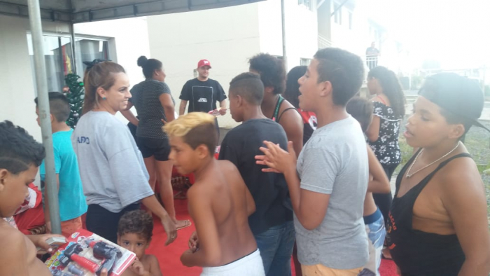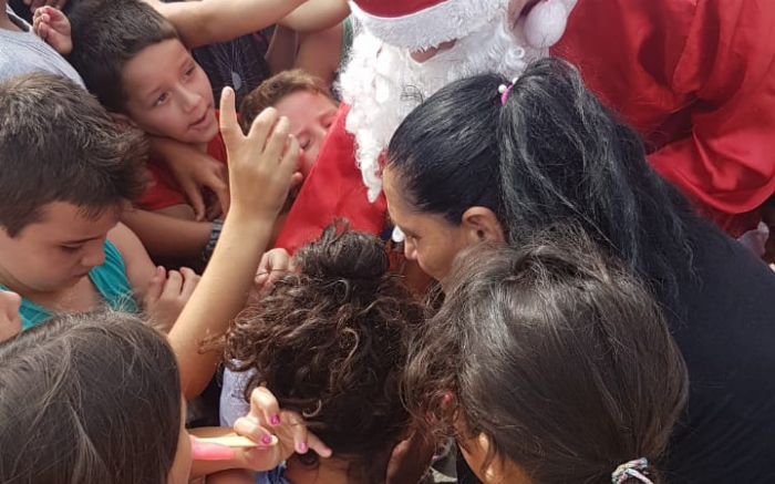 Foi um sucesso o evento de Natal para a criançada - promovido pela associação Colcha de Retalhos no loteamento São Francisco de Assis, na city peixeira, no último sábado. Solidariedade O significado do nome da associação é bacana: "Retalhos significa que juntamos nossos retalhos da vida, de tudo que passamos e vivemos e fizemos uma colcha de solidariedade", conta a presidente. Voluntários e apoiadores Segundo a presidente Daniele Cristina de Souza Azevedo, com o apoio de voluntários e apoiadores que tornaram a iniciativa possível realizar um evento que contou, inclusive, com a presença do prefeito barbudinho Volnei Morastoni (MDB). Sucesso "Ver o sorriso no rostinho de cada criança não tem preço", fala, exultante, Daniela. O sucesso do evento, foram os números do que foi servido para os pequerruchos: cerca de 1000 cachorros-quentes; 800 picolés; 600 fatias de bolo; 20 quilos de pipoca; 400 algodões-doce; 130 litros de refrigerantes. Além de uma infinidade de doces e guloseimas. Rolou, também a instalação de brinquedos infláveis; corte de cabelo e, distribuição de presentes. Parabéns aos envolvidos. Fotos (Divulgação)